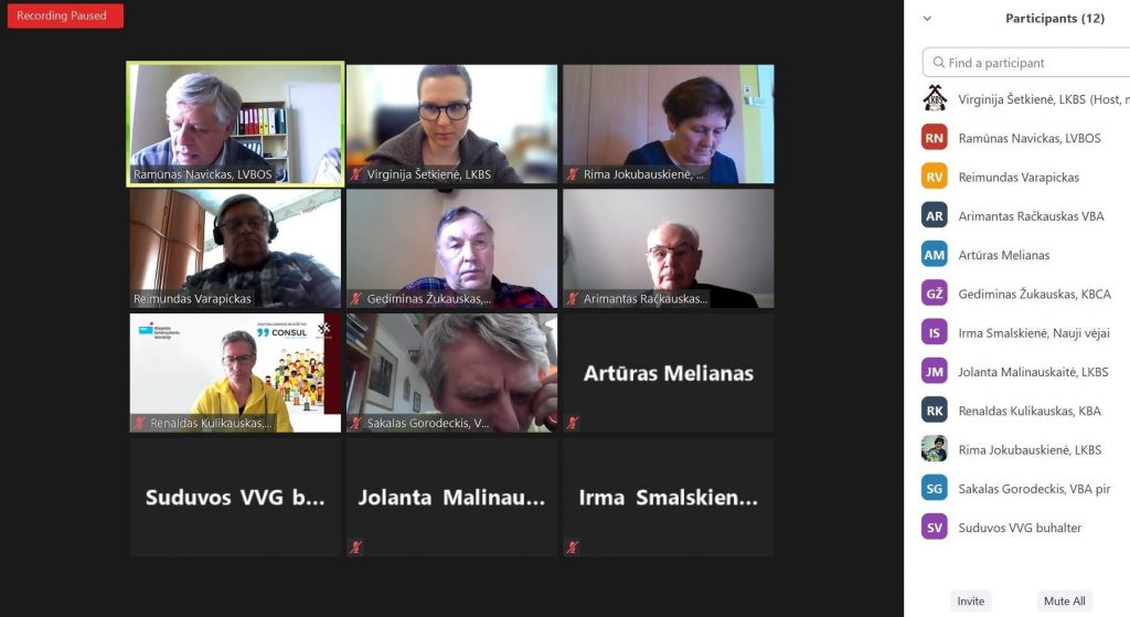 Susirinkime buvo aptartas ir vykdomo SADM finansuojamo projekto artimiausi planai: gegužės pabaigoje įvyks pirmais išvažiuojamasis LVBOS strategijos planavimo posėdis, planuojama paskelbti vietos bendruomenių organizacijų poreikių ir galimybių apklausą bei dėl karantino apribojimų planuojamų susitikimų su apskričių bendruomenių organizacijų tarybomis formatas.
