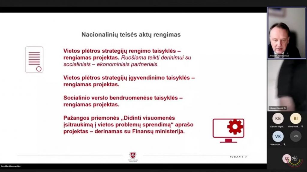 Sausio 19 d. įvykusiame Seimo laikinosios „Pilietinio bendradarbiavimo ir bendruomeniškumo skatinimo“ grupės posėdyje buvo svarstomas naujojo 2022-2027 m. etapo Bendruomenių inicijuotos plėtros programos (BIVP) prioritetai ir miestų VVG veiklos uždaviniai šiame etape, aptarti besibaigiančio etapo rezultatai ir problemos..